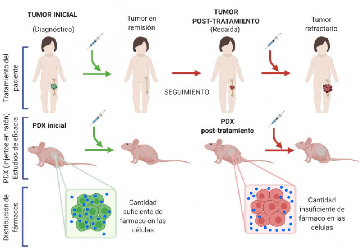 Un equip d'investigadors de l'Hospital Sant Joan de Déu Barcelona ha aconseguit reproduir en ratolins de laboratori un tumor pediàtric en les diferents etapes de la seva evolució, tant primerenca (en el moment de la diagnosi) com tardana (quan la malaltia reapareix), per tal d'analitzar com es produeixen les resistències a la medicació.