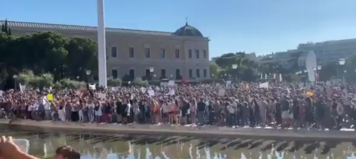 "Volem veure el virus", ha estat el crit que ha sonat aquesta tarda als carrers de Madrid. Al voltant de les 18:00 de la tarda, centenars de manifestants s'han congregat a la plaça de Colón, sense mascaretes i sense respectar la distància de seguretat.