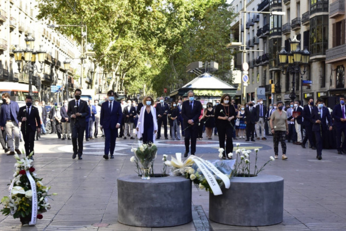 L'acte, celebrat en La Rambla de Barcelona en el memorial installat en el lloc de l'atemptat, també ha consistit en una ofrena floral, en línia amb el de fa un any, però enguany respectant les mesures de seguretat imposades per l'emergència sanitària del coronavirus, amb els assistents protegits amb màscares.
