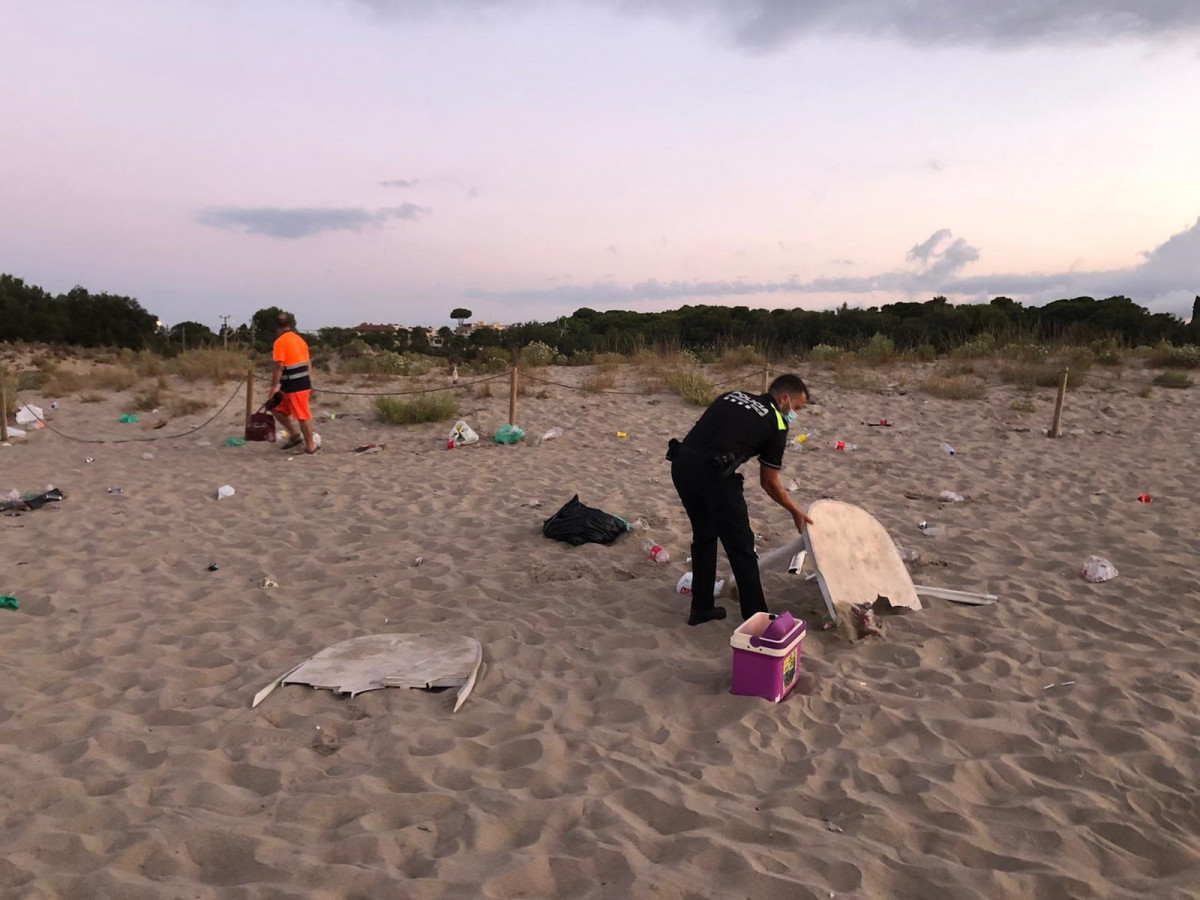 Dues patrulles de la Policia Local i una dotació d'Arro dels Mossos s'han dirigit el lloc, moment en què els joves se n'han anat "per la mateixa platja i per l'espai natural, deixant el lloc en un estat de brutícia lamentable", informa l'Ajuntament aquest diumenge en un comunicat.