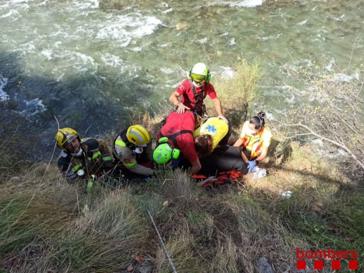 Els Bombers de la Generalitat l'han rescatat amb una grua, i el Sem, que ha activat dues unitats, l'ha traslladat a l'hospital en estat greu, tot i que no es tem per la seva vida.