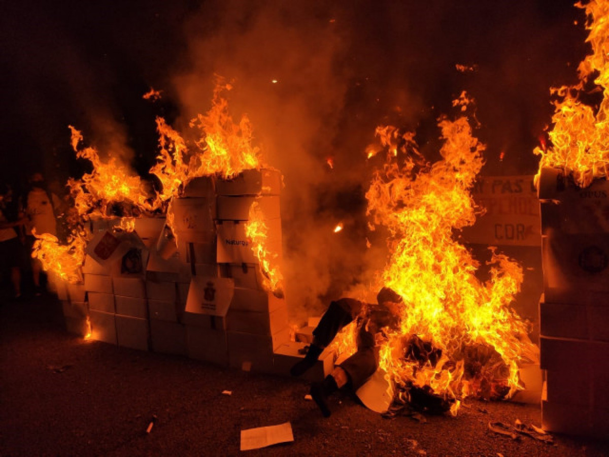 Els han cremat després de simular un judici contra 'el règim del 78', conduït per Roger Espanyol, el manifestant que va perdre un ull durant els aldarulls de l'1-O.