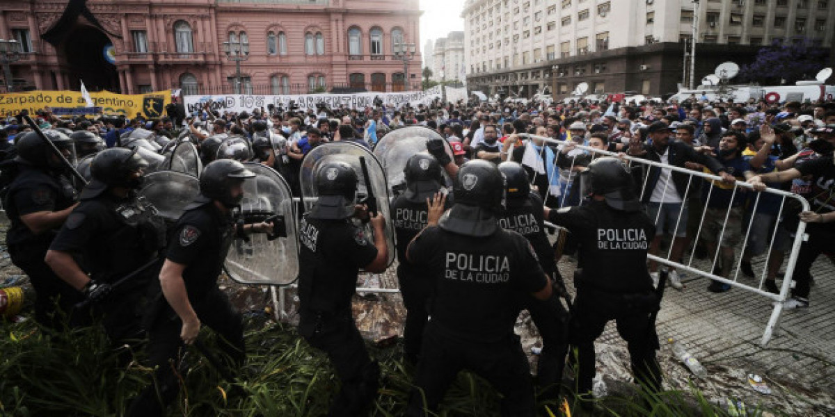 Els actes violents han obligat a tancar de manera provisional l'accés a la Casa Rosada davant el fet que desenes d'aficionats havien aconseguit colar-se a l'interior de la seu de Govern. Per uns moments, la situació que s'ha viscut ha estat tan descontrolada que els responsables policials han optat per retirar el fèretre de l'astre per evitar mals majors.