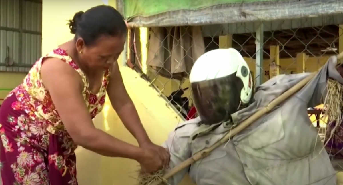 "Des que vaig fer aquests Ting Mongs, van ajudar a foragitar qualsevol virus, inclòs el coronavirus, i evitar que es propagui a la meva família", va dir Ek Chan, que té un espantaocells mascle i una femella.
