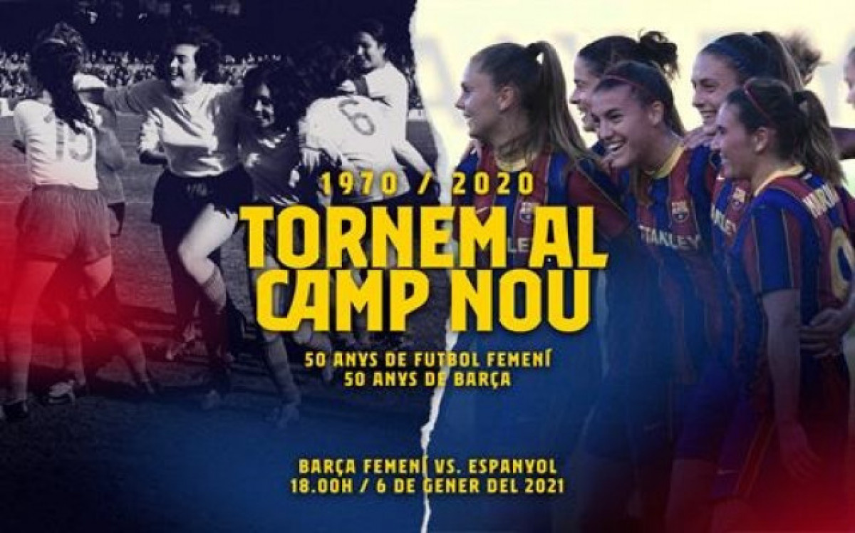 L'equip femení de l'Barça jugarà per primer cop al Camp Nou el proper 6 de gener, mig segle més tard que ho fessin les seves pioneres: la Selecció Ciutat de Barcelona, embrió de l'exitosa actual secció blaugrana. El rival serà ni més ni menys que el RCD Espanyol en partit oficial corresponent al Torneig de Lliga.