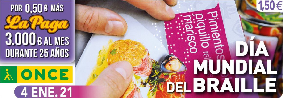 El Dia Mundial del Braille protagonitza el cupó de l'ONCE del dilluns, 4 de gener. Cinc milions i mig de cupons celebraran que amb sis punts la vida de les persones cegues és més accessible.