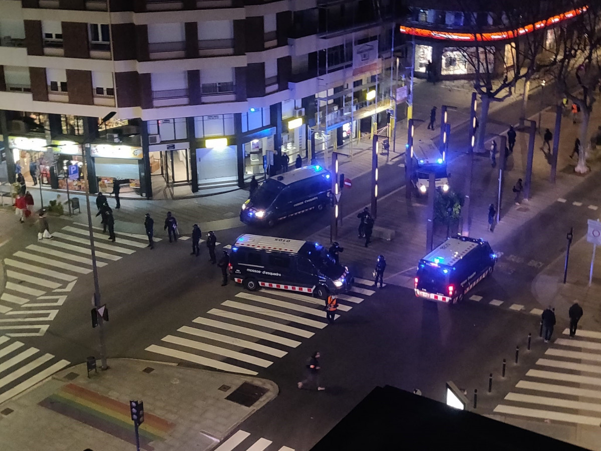 Els dispositiu de seguretat que va desplegar ahir el cos dels Mossos d’Esquadra, i que va comptar amb el suport de la Policia Municipal de Terrassa, va finalitzar cap a les 22:30 h. Segons dades recollides, 7 persones van ser detingudes. També cal destacar que, en principi, cap comerç de la ciutat va resultar afectat, i només es va registrar el trencament d’un vidre d’una entitat bancària. Per altra banda, el Cos de Bombers va treballar sufocant els diferents focs provocats a diferents carrers de la ciutats en contenidors, principalment.