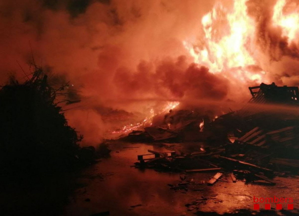 En un comunicat els bombers han comunicat que aquest dimarts de matinada sis dotacions dels bombers han treballat en un incendi que ha afectat palés amb tot de material per reciclar al pati exterior d'una deixalleria d'Hostalric.