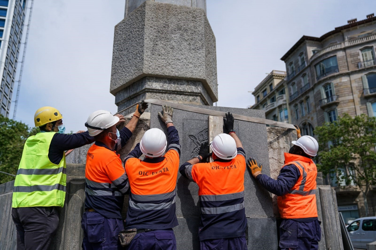 L'Ajuntament de Barcelona ha retirat aquest dissabte l'escut de Juan Carlos I de l'obelisc de la plaça Cinc d'Oros coincidint amb la commemoració del 90è aniversari de la proclamació de la Segona República.