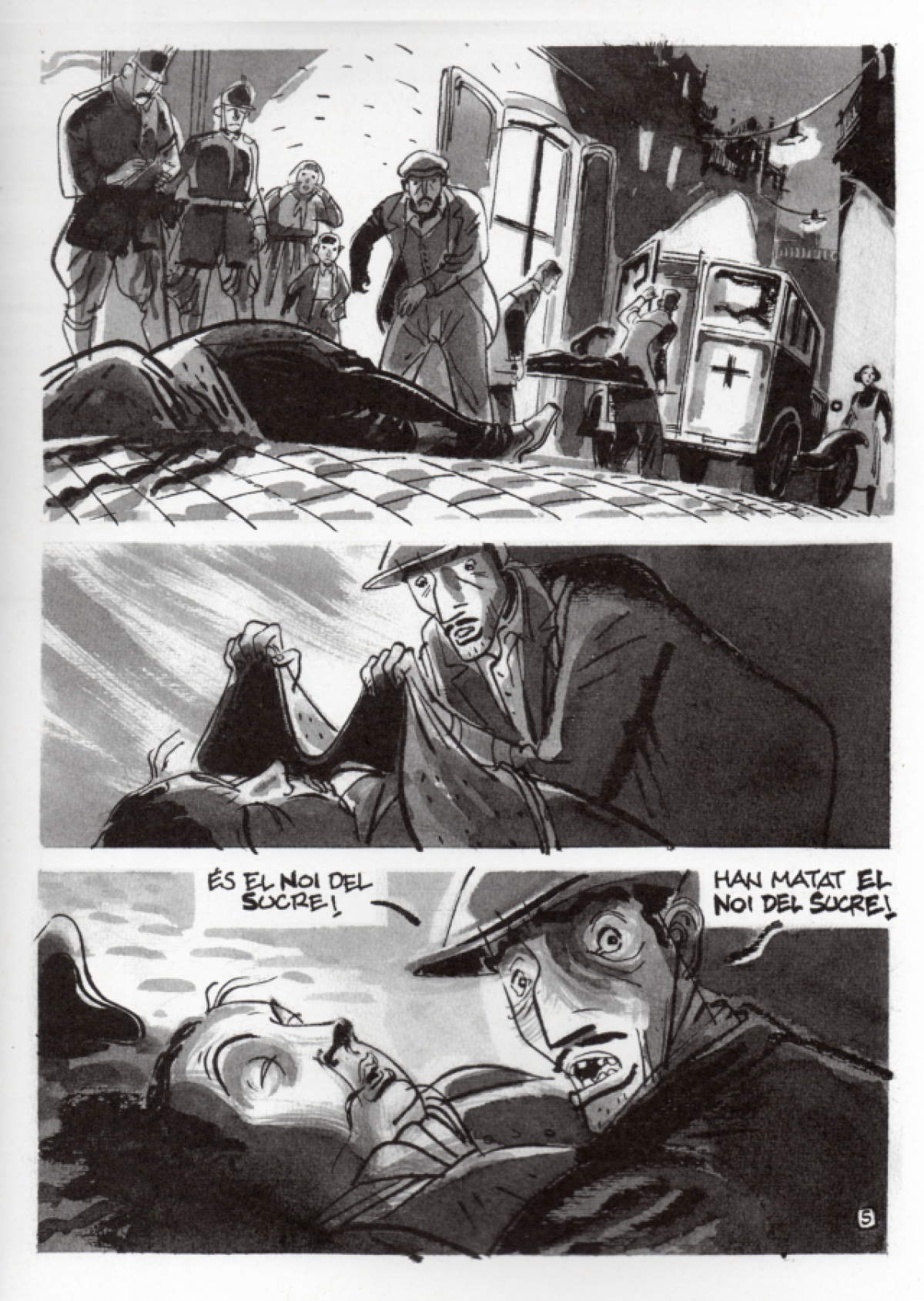 "8 hores. El noi del Sucre i la vaga de la Canadenca "es llegeix tal qual la historieta gràfica que és, amb l'única diferència amb la generalitat dels còmics que el que explica és una història real sobre la vida d'un caracteritzat màrtir de la causa obrera que va ser conegut com el "noi de sucre" perquè -explica la llegenda- sent noi i exercint com a ajudant de cambrer en un bar del carrer Ponent, es menjava subreptíciament els terrossos de sucre que duia a les taules.