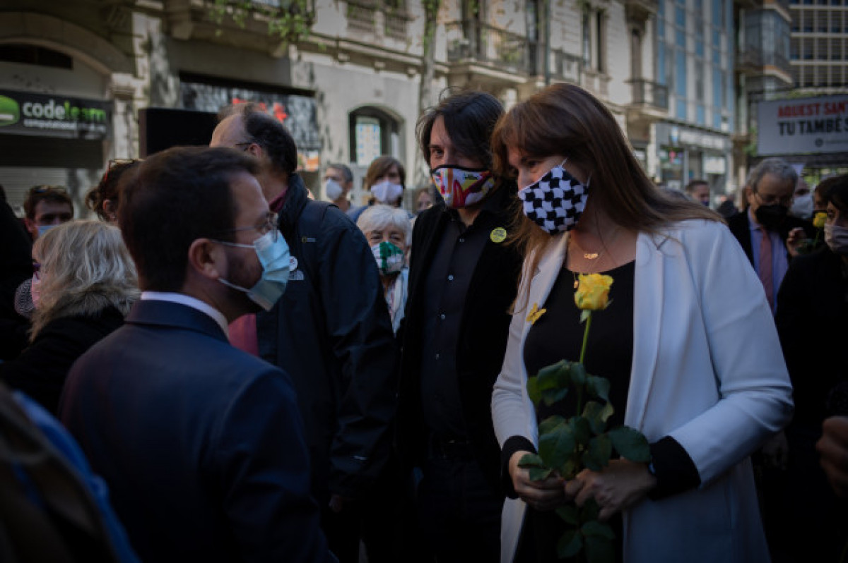 El vicepresident de la Generalitat en funcions, Pere Aragonès, i la presidenta de Parlament, Laura Borràs (EP)