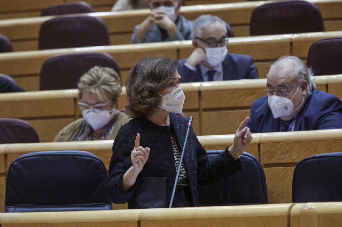 La vicepresidenta primera de Govern, Carmen Calvo, ha replicat aquest dimarts al portaveu de Junts al Senat, Josep Lluís Cleries, que l'amnistia per als presos independentistes "no és plantejable" en un Estat de Dret perquè seria, segons ha dit, " suprimir el poder judicial ".
