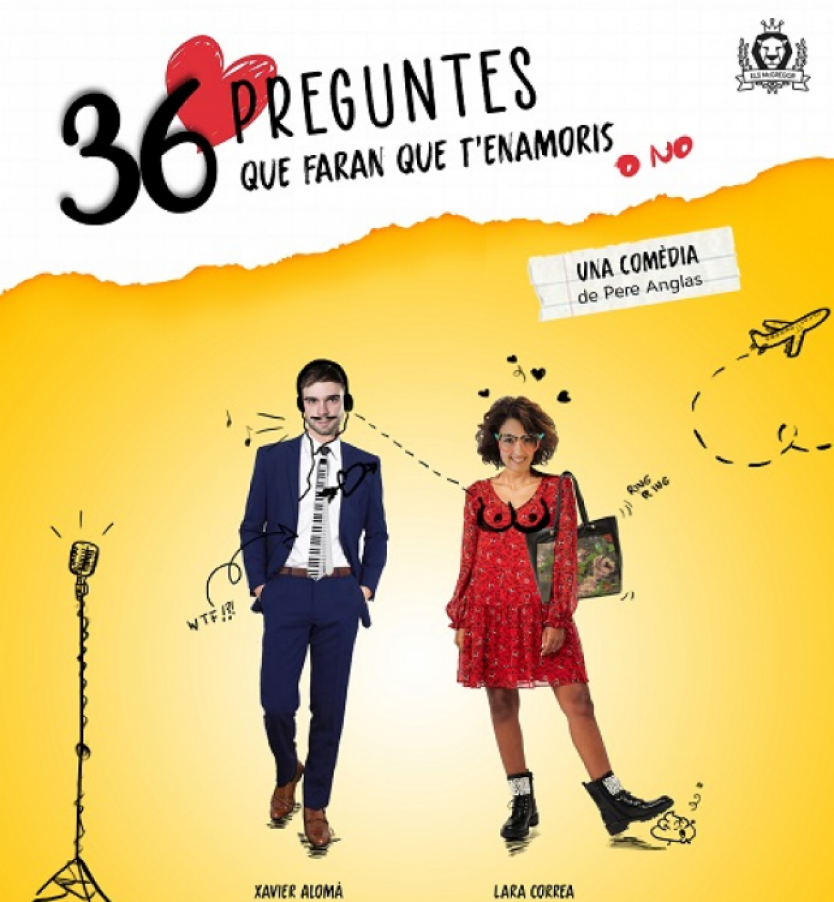 Aquesta comèdia, escrita i dirigida per Pere Anglas obra i que s'ha representat ja en 16 locals de la xarxa teatral de Catalunya, està inspirada en l'experiment que el psicòleg canadenc Arthur Aron va realitzar el 1997 sobre els mecanismes que entren en funcionament quan estem enamorats d'algú. Es basava en un qüestionari de 36 preguntes que diverses parelles d'estranyes havien de respondre. El més curiós va ser que si bé l'experiment estava destinat únicament a investigar la intimitat, la veritat és que, després d'aquestes sessions, més d'una parella s'havia enamorat. Tot això fa que sigui una comèdia teatral àcida, fresca, desvergonyida i molt "friki" que tracta de l'amor, la família i l'amistat.