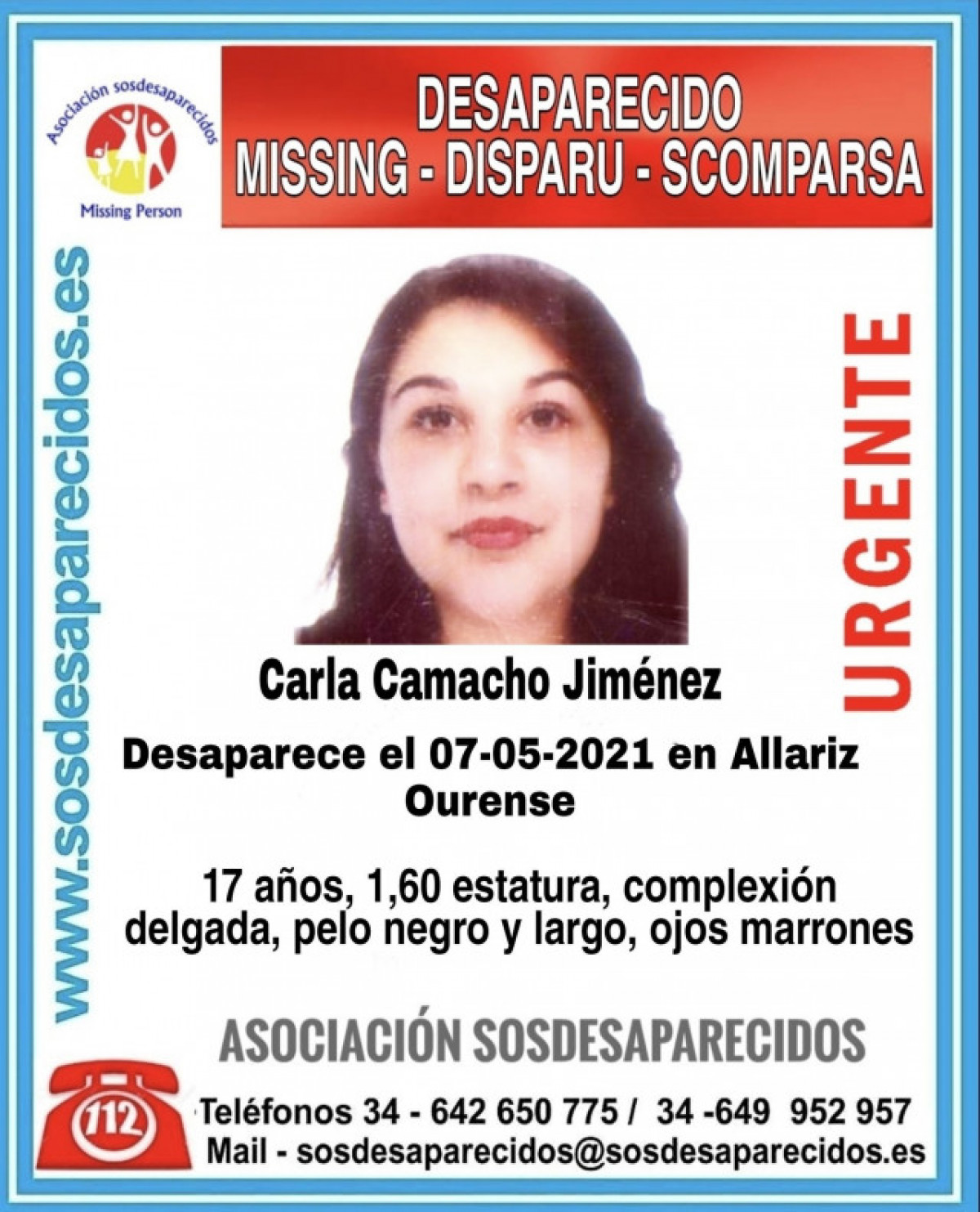L'associació SOS Desapareguts ha activat la recerca de Carla Camacho Jiménez, una menor de 17 anys desapareguda al municipi Ourense d'Allariz.