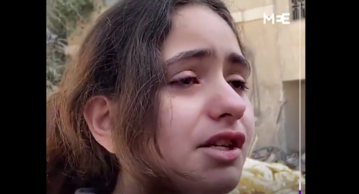 La nena plorant es pregunta "per què ens mereixem això? Què hem fet per això?". "La meva família diu que simplement ens odien". A continuació assenyala a altres menors que hi ha al voltant seu: "¿veus a tots els nens que m'envolten? Són només nens. Per què enviar-los un míssil i matar-los? No és just".