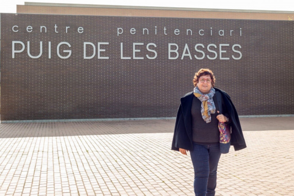 Dolors Bassa davant del centre penitenciari Puig de les Basses (EP)