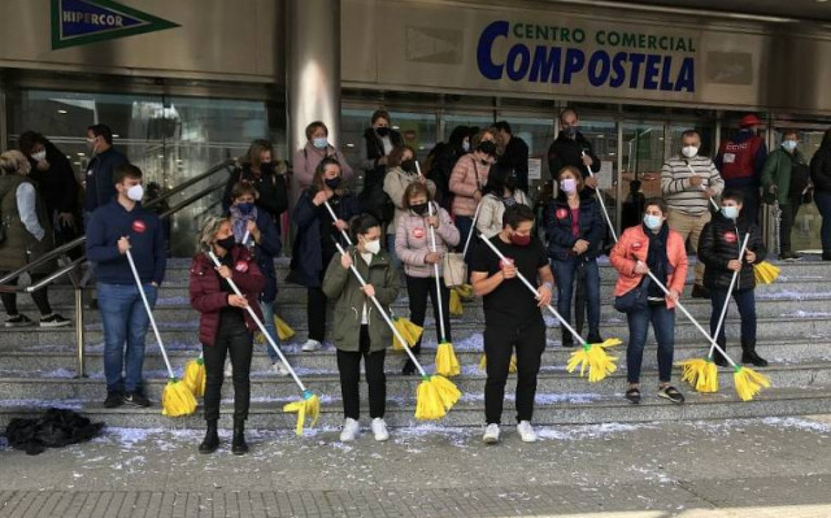 Protesta de les treballadores de la neteja subcontractades davant de l'El Corte Inglés de Santiago en una foto d'CIG en una imatge d'arxiu durant les protestes pel conveni provincial de la neteja