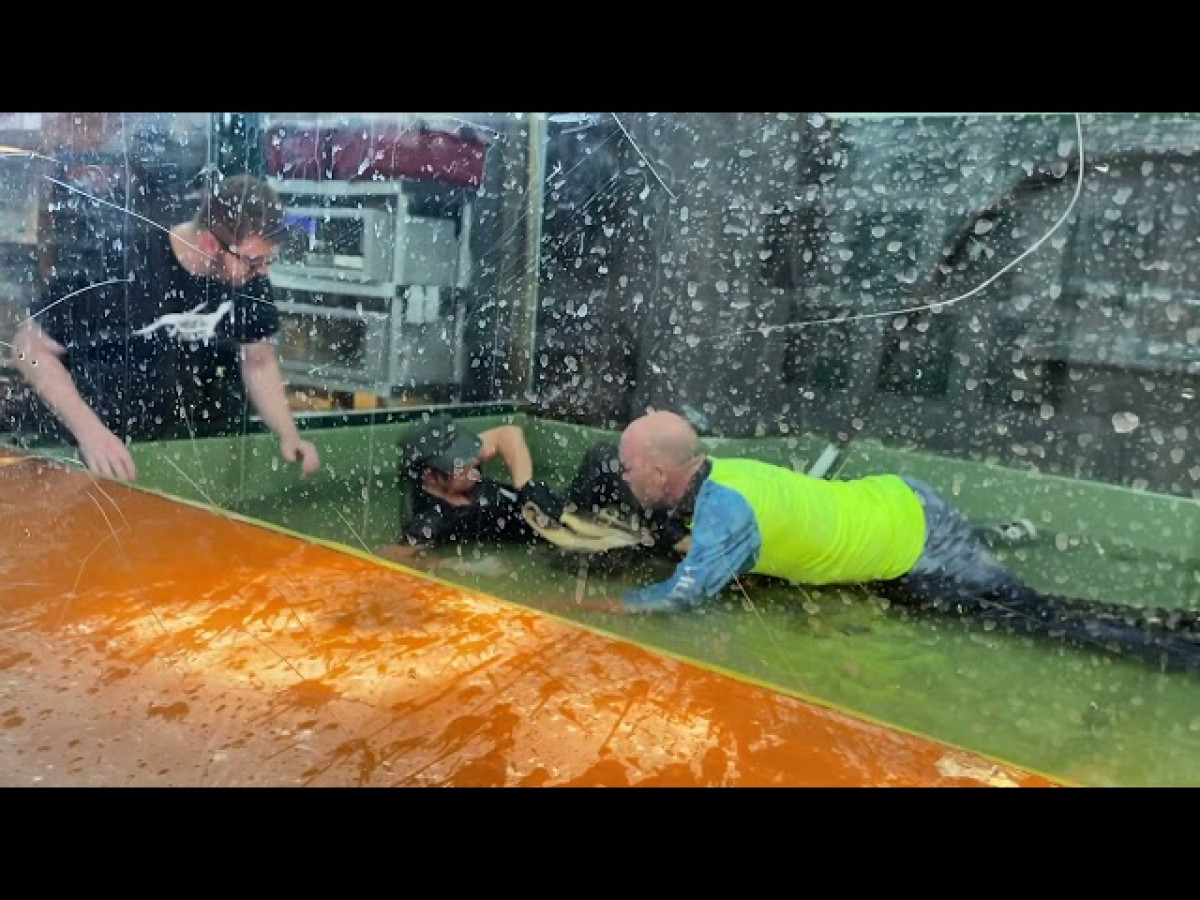 D'aquesta manera es van quedar uns segons, tranquil·litzant a l'animal, fins que aquest va deixar de regirar-se i va alliberar a la dona. Ella va sortir de l'aigua, però llavors el que es va veure en problemes va ser l'home que va anar a ajudar-la. L'animal va començar a regirar-se de nou i al senyor li va costar uns segons tranquil·litzar-lo de nou i poder escapar del tanc.