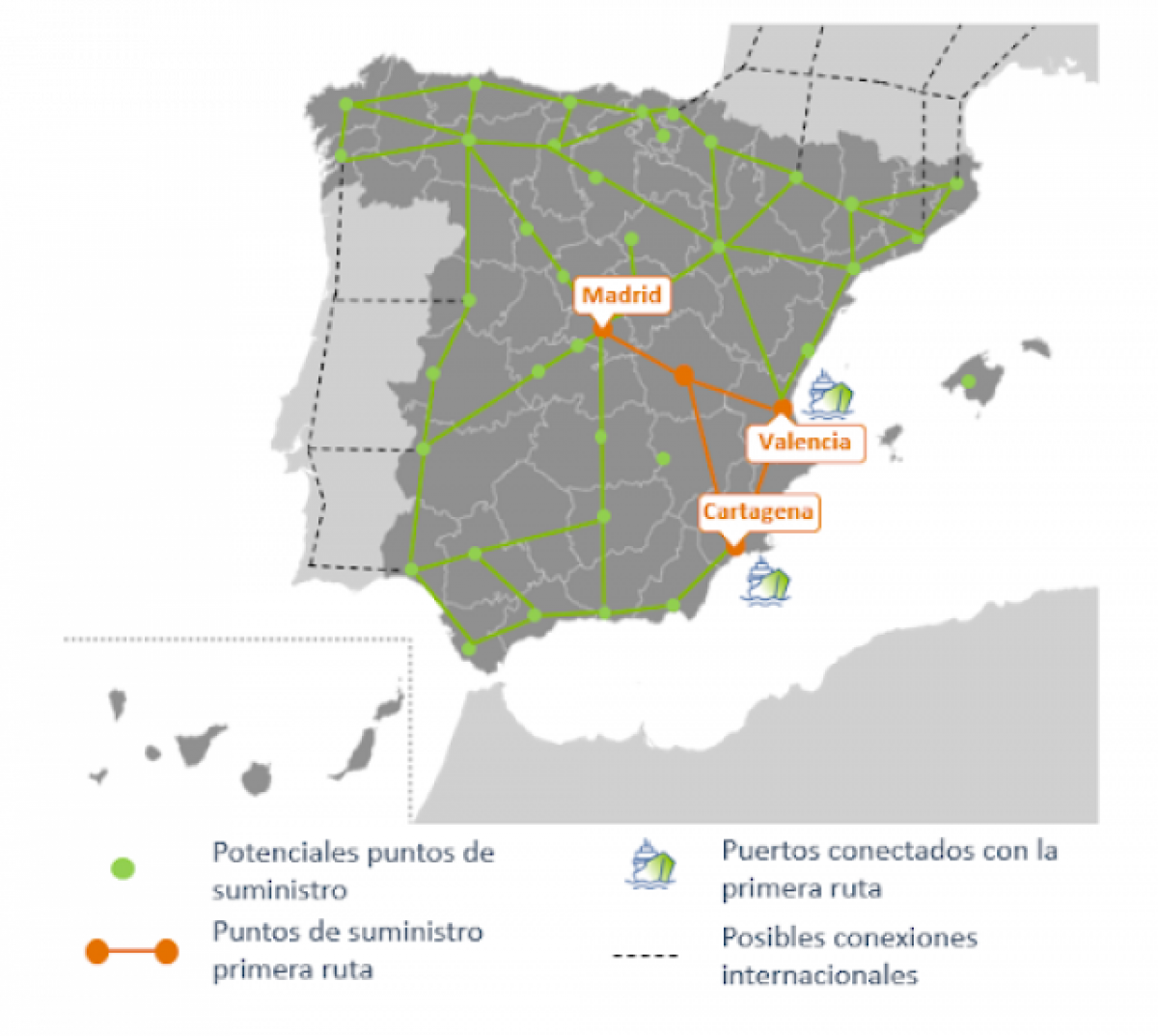 Les tres companyies estan ja dissenyant la primera ruta que permetrà subministrar H2 verd a les localitats de Madrid, València i Múrcia / Cartagena, així com interconnectar a través d'un corredor d'hidrogen, facilitant així el moviment entre aquestes zones mitjançant vehicles propulsats per aquest combustible sostenible. L'elecció d'aquesta primera ruta s'ha dut a terme tenint en compte l'alt volum de transport pesat, tant de mercaderies com de passatgers.