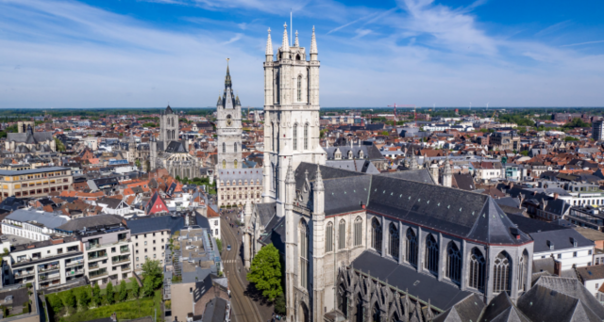 A la sortida els espera la Plaça de la catedral que té en el seu centre una estàtua de Jan-Frans Willems, defensor de la llengua flamenca i davant el campanar de Belfort, antiga torre guaita, a la qual s'ascendeix a ascensor i des la cúpula s'albira una de les millors vistes de la ciutat. En un altre dels costats d'aquesta mateixa planta, el Teatre Nacional Flamenc i darrere, l'ajuntament, un espectacular edifici en estils gòtic i renaixentista.