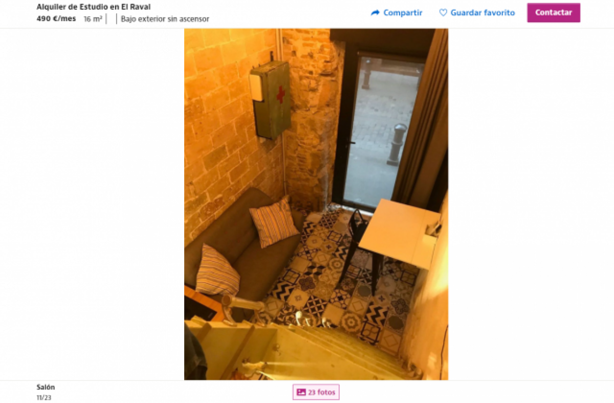 Paga gairebé 500 euros de lloguer per un zulo de 16 m2 sense cèdula d'habitabilitat a Barcelona: "Es pot facturar sense IVA"