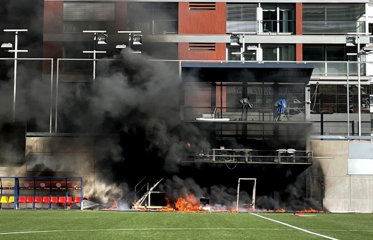 VÍDEO. Aparatós incendi a l'estadi Nacional d'Andorra abans del partit contra Anglaterra
