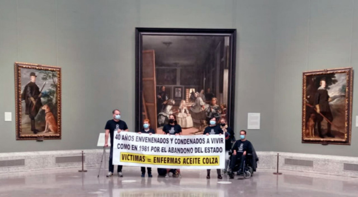 Les sis víctimes de la colza que pretenien tancar-se al Museu del Prado amb l'objectiu de reunir-se amb el president de Govern, Pedro Sánchez, per donar resposta urgent a la seva situació, han estat desallotjades passat el migdia d'aquest dimarts, després que la policia hagi detingut tres d'ells que no volien desistir de la seva acció.
