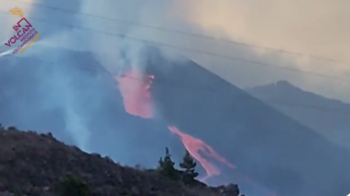 Així mateix mostra com la lava continua sortint a borbolls i destaca que l'activitat és "molt violenta" a la boca central, en el flanc s'ha obert una nova boca eruptiva.