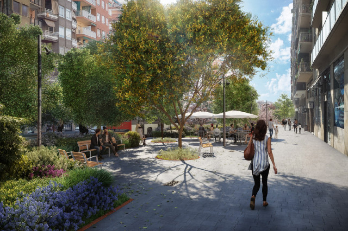 Així serà el nou i verd carrer Pi i Margall de Barcelona després d'unes obres de 17 mesos