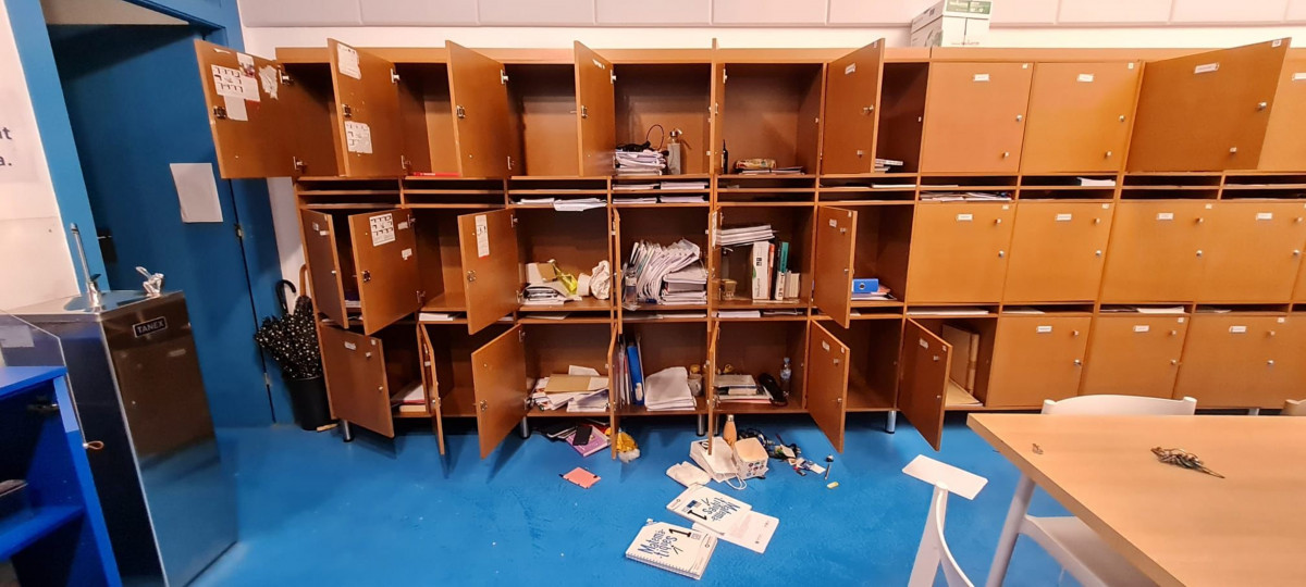 Algunes guixetes d'un despatx de l'INS Gili i Gaya de Lleida remenades. /@ACN