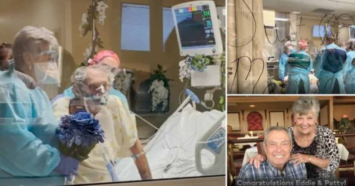 Un pacient de càncer de 75 anys que va contreure coronavirus i pneumònia es va casar amb la seva exdona a través de la finestra del seu hospital només dos dies abans de morir. Eddie i Patty, de 74 anys, es van casar per primera vegada a la dècada de 1970 quan eren "joves i estúpids" i van acabar la seva unió un any després.