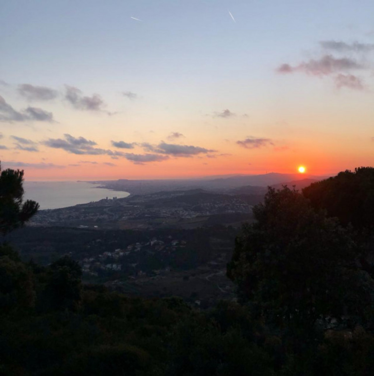 Acabem setmana amb aquesta preciosa imatge de la posta de sol des del mirador de la Cornisa, a Teià, amb vistes a la ciutat de Barcelona i la costa del Maresme.