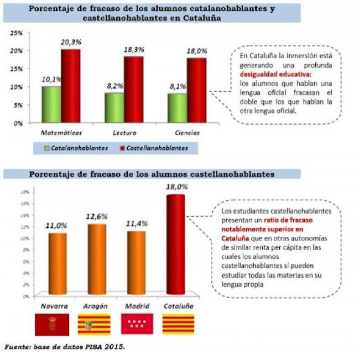 Per començar, cal dir alt i clar que la immersió lingüística en català és un despropòsit psicopedagògic, que no condueix al domini de la llengua de Cervantes ni al desenvolupament cognitiu dels alumnes ni a l'èxit escolar. Només cal tenir en compte les aportacions sobre Rosa Sensat i Miquel Siguán , que no són sospitosos de ser anticatalanistes.