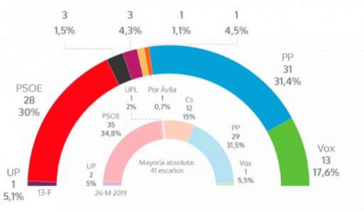 Si Cs suma el seu únic diputat al PP, encara s'ha de veure. Al PSOE també hi haurà conseqüències i Luis Tudanca , va amenaçar de dimitir. Els socialistes han vist com les plataformes de l'Espanya Buidada els han robat el vot en territoris com Sòria o Lleó , on les forces regionalistes i localistes de Sòria Ja! i Unió del Poble Leonès els han pres els procuradors en aconseguir tres diputats cadascuna.