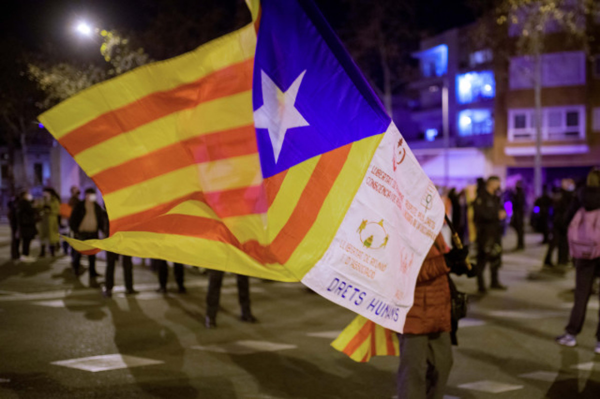 Una persona agafa una bandera durant els talls a la Meridiana @ep