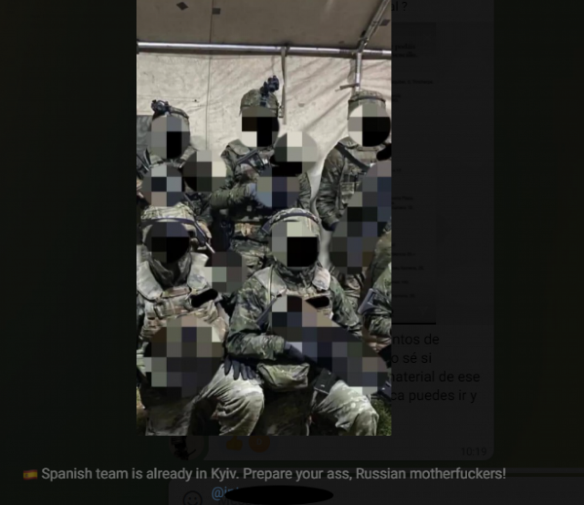 Voluntaris espanyols en una imatge de propaganda del Batalló Azov en un dels seus canals de reclutament