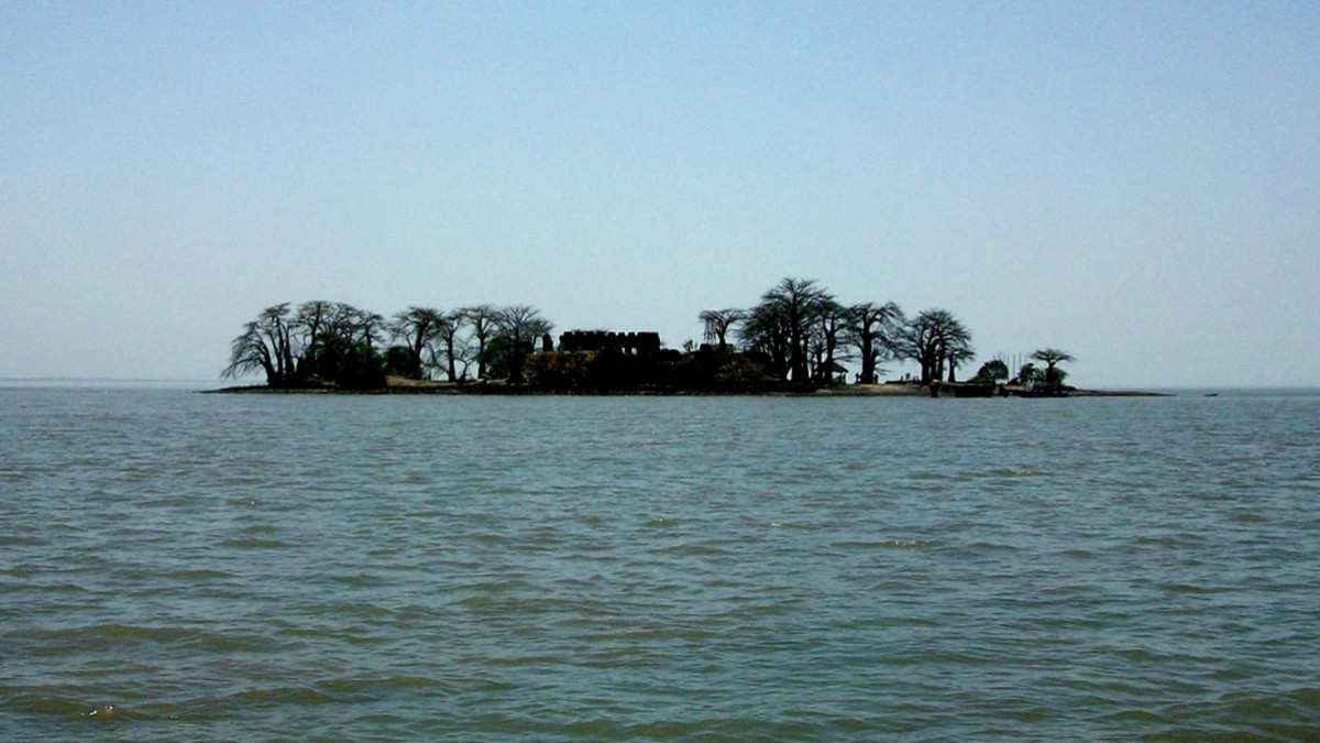 Les mateixes embarcacions que transportaven esclaus tornaven a Europa amb cacau, tabac, blat de moro, cacauet, pinya, vainilla… fruit del treball dels esclaus i, un cop descarregada la mercaderia, es dirigien de nou a les costes africanes per continuar tan singular activitat comercial. Des de Juffureh, a una mica més de tres quilòmetres, es pot veure l'illa de Kunta Kinteh, més o menys a la meitat del riu. “La Jove Antonia” hi va posar rumb i, per no quedar encallats, va fer àncores a uns cent metres de distància. Pujat en una d'aquestes típiques barques gambianes, vam arribar a l'illa pocs minuts després i, segons ens apropàvem, es deixava veure el perfil del fort James, batejat així pels anglesos en honor al duc de York. Després de recórrer el petit pantalà, s'arriba a unes ruïnes on una maqueta de la fortificació i uns canons oxidats et donen la benvinguda. A qualsevol racó que et portin els teus peus o pedra on posis les teves mans, sentiràs que l'home va estar allà, uns empresonant, altres empresonats i que per molts anys que passin, no s'esborrarà de les pedres que encara es mantenen drets, ni de la memòria col·lectiva.