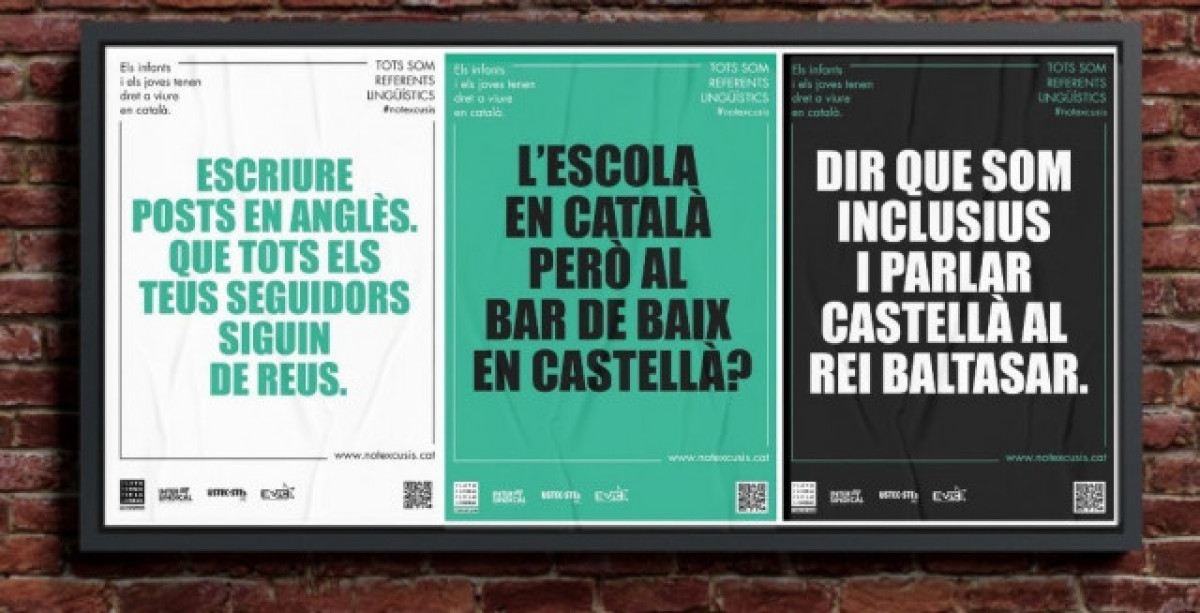Cartells d'una campanya impulsada per sindicats i Plataforma per la Llengua