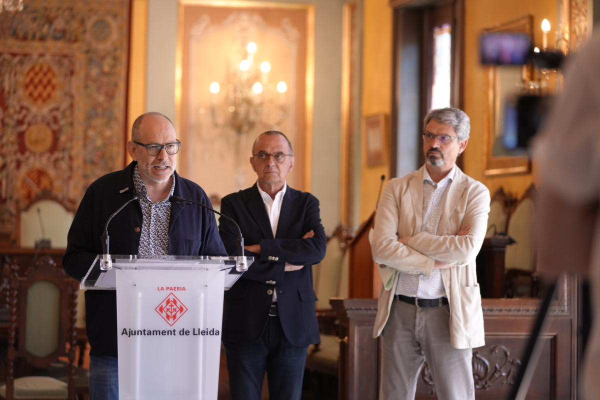 L’alcalde de Lleida, Miquel Pueyo, ha presidit la presentació del projecte, acompanyat del primer tinent d’alcalde i regidor d’Urbanisme, Toni Postius, del regidor de Cultura, Ciutat i Transició Ecològica, Jaume Rutllant, del director dels Serveis Territorials de Cultura de la Generalitat, Albert Turull, i del director del Consorci del Turó de la Seu Vella, Joan Baigol.