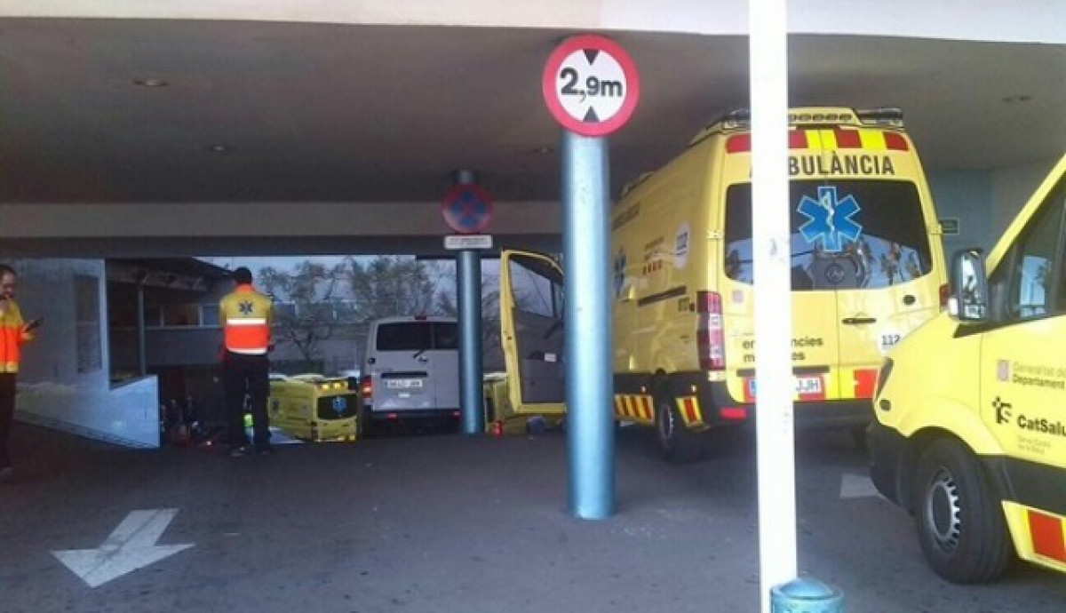Aquesta foto que vam presentar i que va ser penjat al Twitter de les urgències de l'Hospital del Mar mostra com les ambulàncies fan cua per poder aparcar.