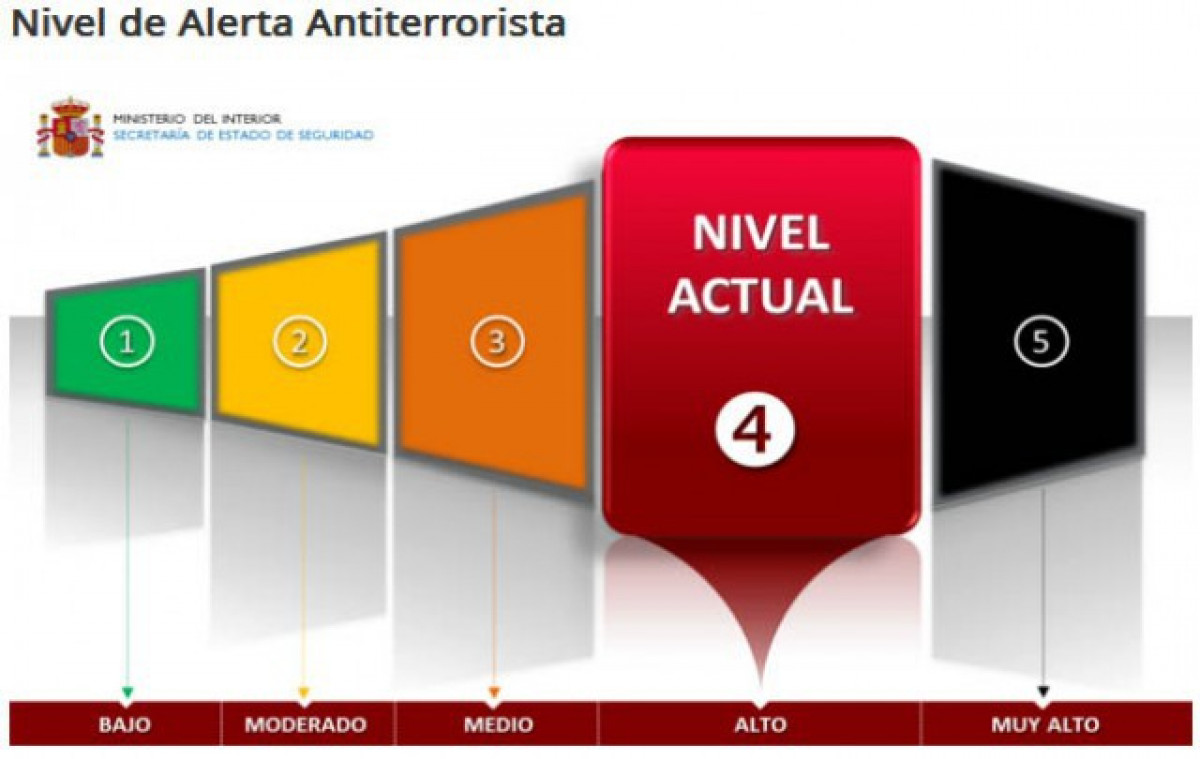 CatalunyaPress.- El Ministeri d'Interior manté el seu nivell d'alerta 4 per terrorisme a tot Espanya, que era el que el país ja tenia després dels atemptats de París. Així li ho ha confirmat a CatalunyaPress.