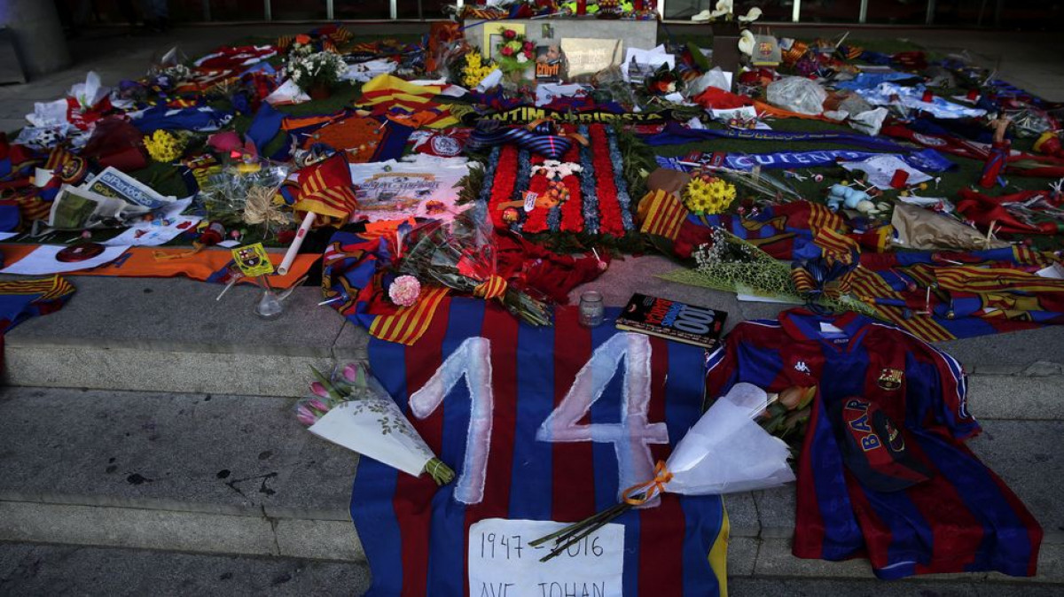 La Junta Directiva del FC Barcelona, encapçalada pel president Josep Maria Bartomeu, va inaugurar dissabte a les deu del matí el espai de condols després d'un emotiu minut de silenci davant d'una enorme imatge de l'holandès. Després d'això, el president Bartomeu va prendre la paraula. "Són dies molt tristos per al barcelonisme i d'acord amb la família queda obert aquest espai de condols fins dimarts", ha explicat.