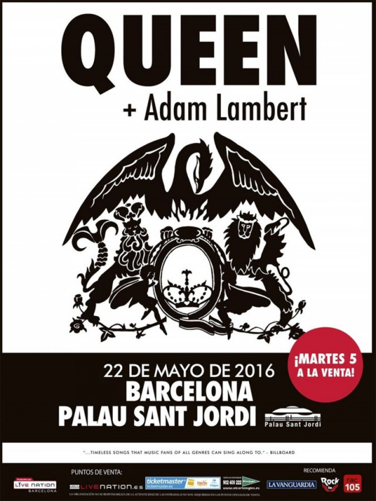 Queen actuarà aquest diumenge al Palau Sant Jordi de Barcelona al costat del cantant Adam Lambert. Serà l'únic concert de la seva gira europea que recalarà a Espanya.