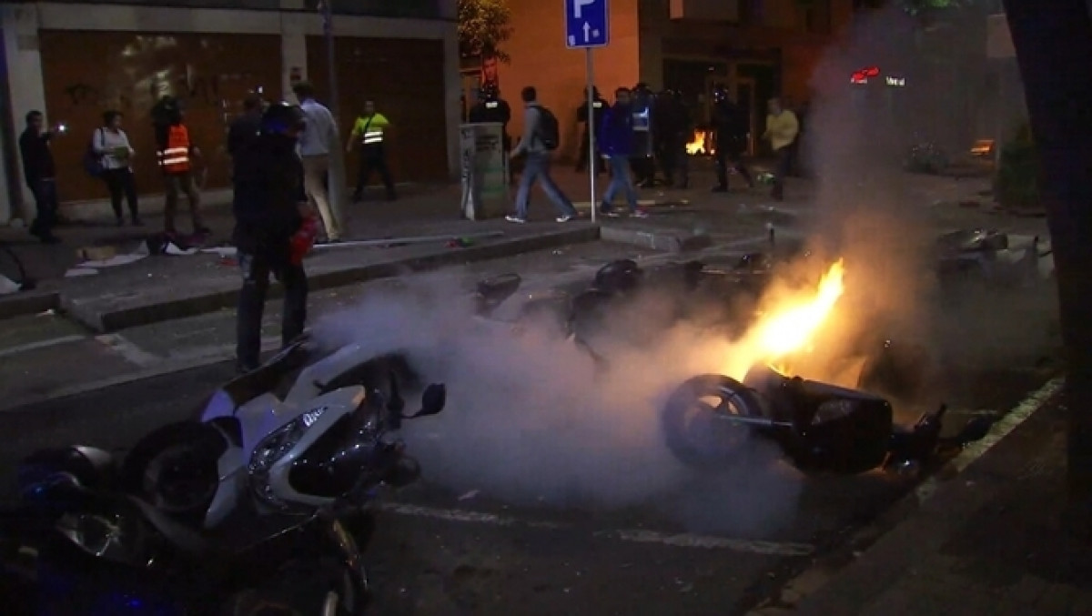 Un detingut i 15 ferits en els aldarulls a Gràcia pel desallotjament del Banc Expropiat