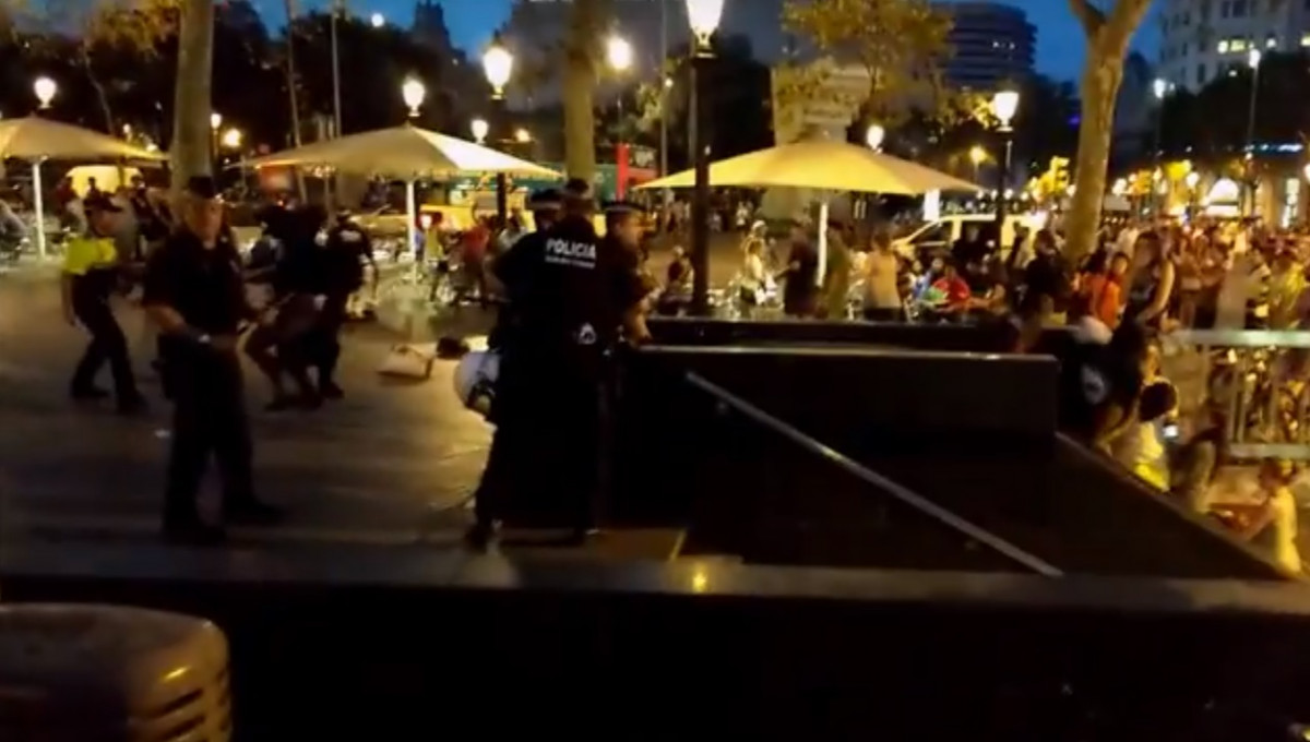 Aquest dijous, cap a les 21:45, s'ha efectuat una càrrega policial contra el 'top manta' en els voltants de la plaça de Catalunya.