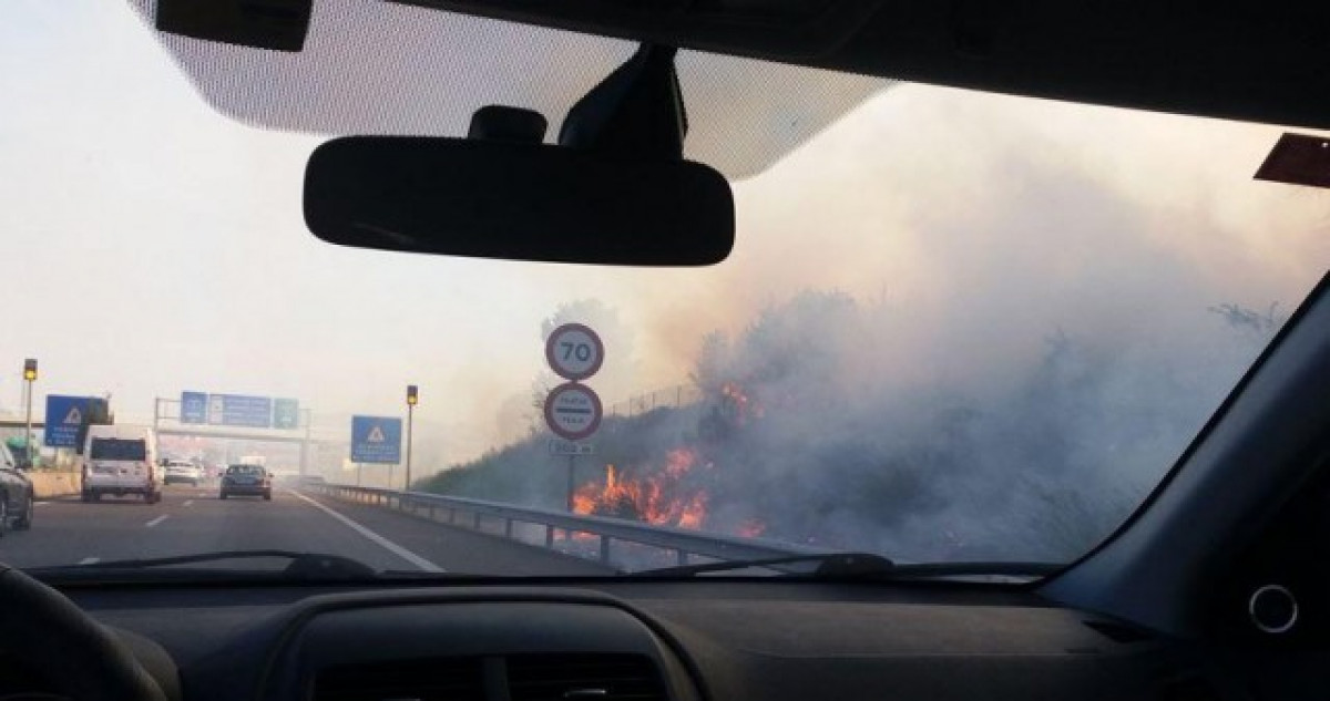 Bombers de la Generealitat han explicat a Europa Press que l'avís del foc s'ha rebut a les 6.22 hores i que s'ha tallat el trànsit de l'autopista per la proximitat a les flames.