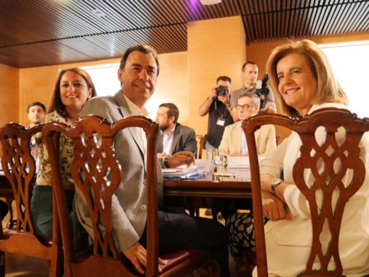 (Foto: Andrea Levy, Fernando Martínez-Maíllo y Fátima Báñez abans de començar una nova reunió amb Ciutadans al Congrés // Twitter @PPopular)