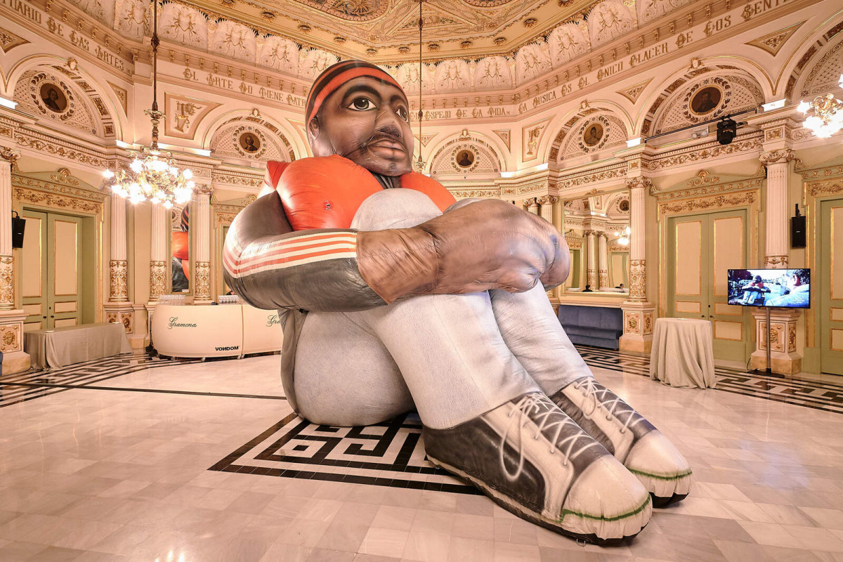 Ha assenyalat que la gran mida de l'inflable contrasta amb la sala, que en proporció es queda petita amb la figura, per plasmar la situació "irrespirable" d'aquestes persones i ha defensat la importància que una institució cultural com el Liceu retrati aquesta realitat.