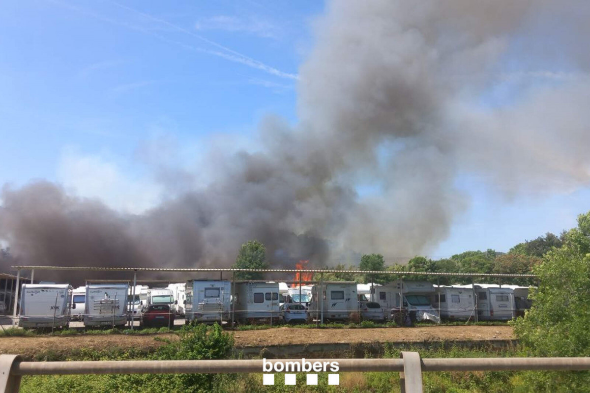 L'incendi afecta diversos vehicles estacionats a l'aparcament de la nau i vegetació confrontant, tot i que els bombers han aconseguit parar la propagació del foc per la vegetació a banda i banda de la via del tren.