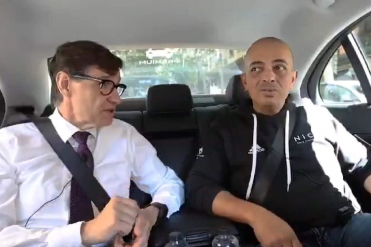 Acostumats a veure'ls en meetings o entrevistes, els polítics necessiten també, de vegades, escenaris menys convencionals. I el número 1 del PSC a la demarcació de Barcelona, Salvador Illa, ha elegit el taxi de Tito Álvarez, líder d'Élite Taxi, en un dels actes de campanya.